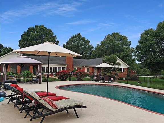 Ranch home features-4 bd 4 ba, 2 fireplaces,2 kitchens, 2 laundry rooms, Theater room, pool, 30x40 building, 5 acres.Main house has 3 bd, 3 ba, laundry room, kitchen, office, fireplace, den & theatre room. Attached Mother-in-law suite with 1 bedroom, 1 bath, kitchen, laundry room, fire place, den with window looking out at pool with custom tiles and pebble stone liner which also has its own entrance & porch. Enjoy a cart ride to the library for a book or magazine to read by the pool. City water for home and Well for the pool.A building on lower lot 30 by 40 for he man or she shed, storage or party room with electricity. Come to Clover where people know their neighbors while enjoying plenty of privacy! Located just 20 minutes from Lake Wylie. Clover Schools are highly rated in US News Best High Schools, rated overall grade A. Located in walking distant to Clover Community Park- includes Soccer field, Splash park, Frisbee Golf, Fishing Pond, Nature Trail, Baseball Field, Evening Concerts