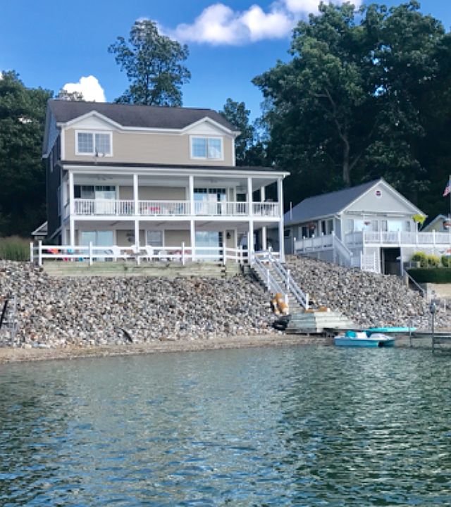 2 different decks allow you to enjoy the views of Lake Gilead. Spacious upper balcony for relaxing and entertaining friends with additional lower sun deck that takes you right to pier and fun. Gorgeous updated chefs kitchen w/ prof grade stainless appliances, spacious family/dining area, finished walk out basement & bath, master suite w/walk in closet and built ins. Hardwoods, new carpeting, updated baths, and large boat garage make this a perfect family get away! Huge garage for boat and all your lake toys! Comes fully furnished! Just bring your beach towel!