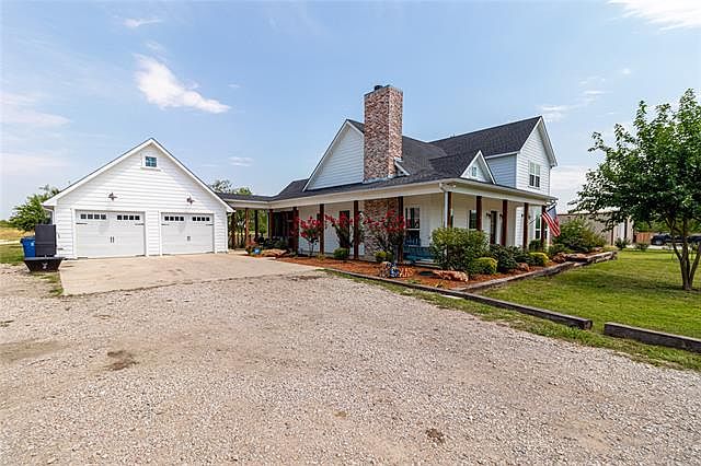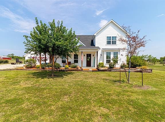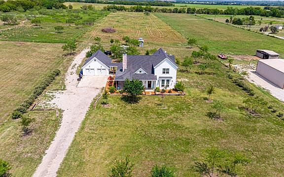 EVERYTHING YOU'VE BEEN LOOKING FOR & MORE! NO HOA! All nestled on 6.16 acres in Maypearl ISD. This industrial farmhouse style 2 story home has a wrap around porch, shiplap throughout, open concept living area and kitchen with vaulted ceilings and cedar beams, custom concrete counter tops throughout, commercial grade laminate wood floors and more! The over sized 3 bedrooms have full size en suite bathrooms. Kitchen has stainless steel appliances, farm sink, and an eat-in kitchen. Outside you have an enclosed patio with a fireplace and a 2 car garage with 10x22 storage room with electricity. storm shelter located under the staircase. Tankless water heater located in the utility room.