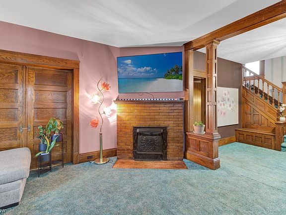 Spectacular and Spacious home with 3 finished levels of living space on a rare find oversized lot! Tons of charm and character in this century home! From the warm and inviting foyer to the large living room with gorgeous natural woodwork and wood burning fireplace you'll enter the updated kitchen with black stainless appliances and slate floors. The formal dining room is currently used as a bedroom. An easy to finish half bath and enclosed back porch completes the first finished level. Up the beautiful natural wood staircase, you'll find 3 large bedrooms and a full bath. The finished lower level was designed to give more sleeping space for a large family complete with a full bathroom and laundry room. Step out back into your own private oasis of a totally fenced in back yard with an inground swimming pool and a covered lounging area. There's more backyard beyond the vinyl fence that extends to the alley. This section of backyard is enclosed with chain link fence. Oversized 24x28 detached garage can be entered from State Ave. and features a rear garage door providing a "drive thru" garage! You can enter from State Ave or the rear alley! Provides extra parking! Great for hosting parties and large family gatherings. Updates include shingles in 2014, updated electrical, gas hot water boiler 2021, pool liner 2016, pool pump 2015 with new motor in 2022.