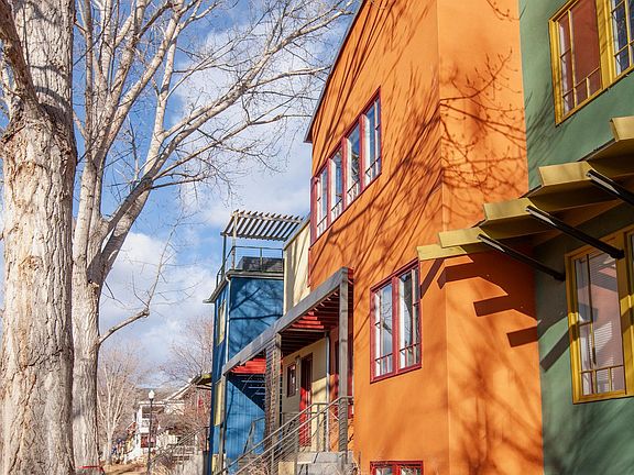 Live stylishly in this updated townhouse in the colorful Crayola Box section of The Prospect Neighborhood. Friendly, open main level floor plan with roomy kitchen, attractive dining area, light filled living area with gas fireplace, and separate office/bedroom with french doors. The 2nd floor primary bedroom retreat has high ceilings, a wall of windows, a double sided fireplace shared by the 5 piece ensuite bathroom, and a walk-in closet that connects to the laundry room. The large basement family room is a bonus area for multiple purposes as needed. Enjoy the fresh air on the back deck in your private courtyard-style back yard. It's a townhome, so it's low maintenance, but you still have a back yard for the dog. The 2 car alley load detached garage rounds out the convenience of your lifestyle and creates a quiet and secure back yard. Main floor office could be a bedroom. The New Town Prospect neighborhood is designed with the residents in mind with pocket parks and wide sidewalks. You'll be just a block or 2 from all the things in the neighborhood: Cavegirl Coffee, Big Daddy Bagels, Babette's Bakery and Urban Thai. Life is good in this townhome that has it all: convenience, community, security, and most of all urban sophistication. (Professional photos on Friday 2-7.)