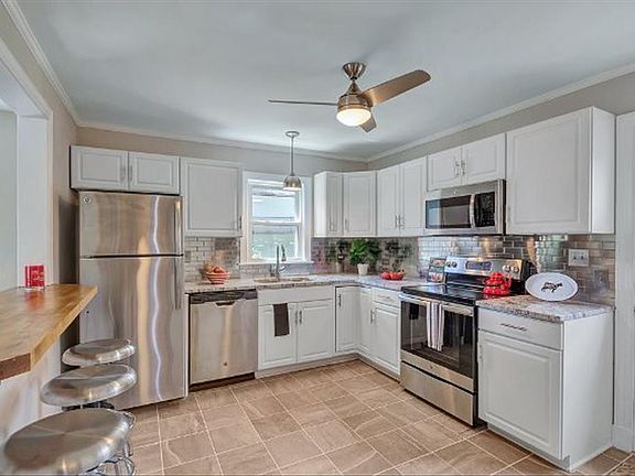 Totally remodeled city home near downtown. 1842 sq ft finished; 253 unfinished 4 bedroom 2 full baths all brick one and half story all brick home on full basement. Living room with wood floors that opens to the all new kitchen that has ceramic floors, granite counter tops, butcher block breakfast bar, stainless steel appliances; stainless steel tile backsplash; 2 remodeled bathrooms, one industrial style; wood floors on first floor; upstairs bedroom have lots built ins; family room with bar/eat-in area , lots of storage; new roof; updated electric panel box; new central a/c; large rear covered porch; very large rear yard; located on low traffic cul de sac street.