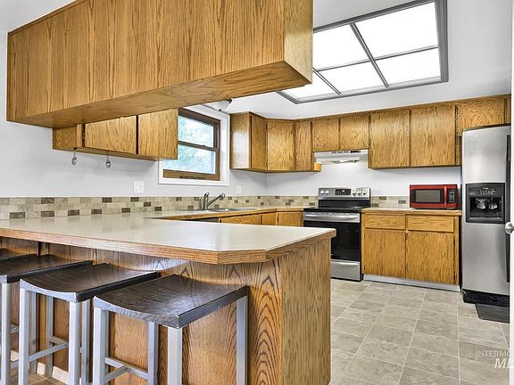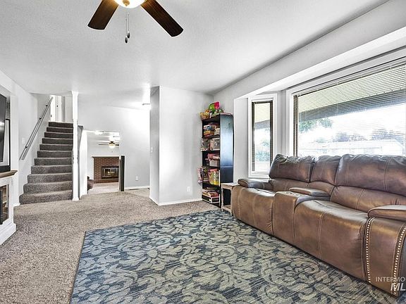 The home has a split level, a large yard, a wood-burning fireplace (aesthetics only), stainless steel appliances, a New Refrigerator, a new dishwasher, a new dryer, and washer, which are included. Summer lawn mowing is provided. Three bedrooms on the upper level and one bedroom on the lower level. The primary bedroom has a Bath on the upper level. The lower level has a 1/2 bath. Close to schools and shopping. Approximately 11 miles to Mountain Home Airforce base. Easy access to Airbase road. A year lease is required. No smoking. The renter will pay all utilities. Mowing service paid by Owner. No Animals