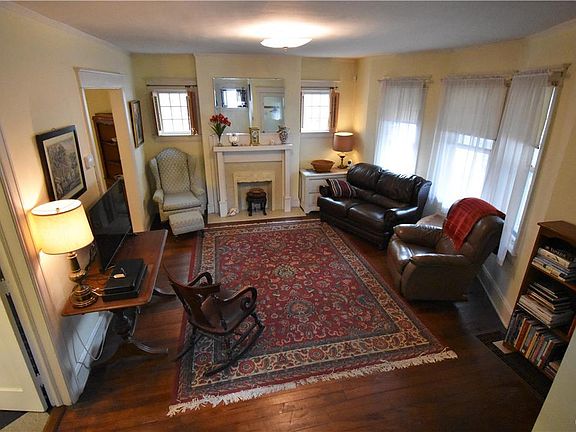 Attractive brick colonial located convenient college hill location. Beautifully designed with inviting front porch, private vestibule entry, spacious living room with ornamental fireplace, formal dining room, period kitchen with original historic cabinetry, and slate/soapstone countertops. The first floor offers a breakfast room that opens onto the private rear yard and off-street parking. A full bath completes the first floor. The second floor offers three spacious bedrooms, plus an enclosed sunroom. The third floor can be used as a bonus room, large rear dormer gives additional space.