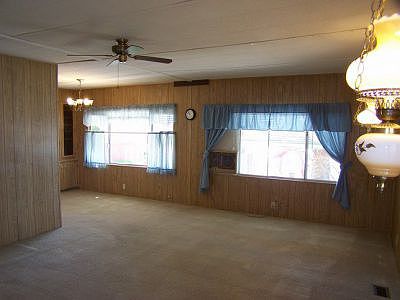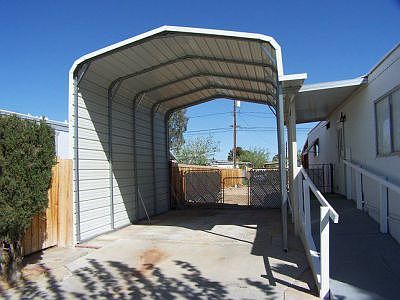 CAN'T BEAT THE PRICE!! Professionally cleaned and move-in-ready! 2 brm 1.75 bath manufactured home in the northwest. Home interior offers wide living room and dining area w/ built in hutch. Kitchen with stainless steel sink, newer gas range, refrigerator, and microwave. Newer washer and dryer in great condition stay also! Both bedrooms are large. Tan carpet just professionally steam cleaned. Side of the home features a huge aluminum RV parking cover and front door & rear door ramps. Attractive Xeriscape in front with a wishing well and two large mature trees. Sits on a large completely fenced lot. Enclosed patio in back! A workshop w/electric and a storage shed in the rear, and a third storage space to keep more stuff out of the weather. Home can be financed via an AltaOne Signature Loan with NO DOWNPAYMENT! NAB IT WHILE YOU CAN!