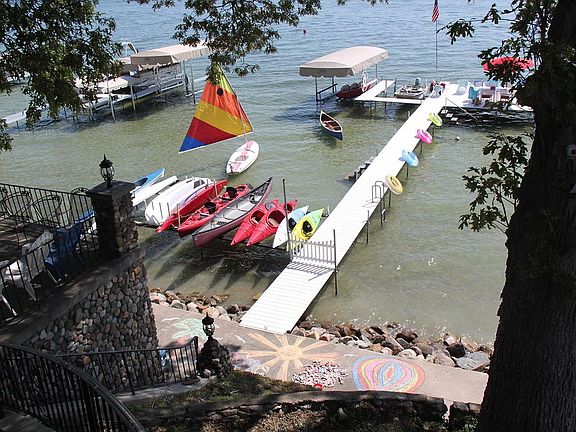 Fall in love with Lake Maxinkuckee every morning you wake up in your own lake cottage! Feel right at home the moment you step into this 5 bedroom/3.5 bath house with gorgeous lake views from the enclosed and screened-in porches. Fieldstone fireplace in the living room compliments the exposed beam ceiling. Main floor master bedroom suite with attached full bath has a view of the lake. Half bath on the main level. Kitchen has breakfast bar and sitting area. Second master bedroom en suite on the upper level with lake view. The other 3 bedrooms are ample in size. Detached 2 car garage. Stone boathouse on the waterfront has electric and a patio above for shady summer relaxing. Serene garden pond with waterfall adds to the relaxing atmosphere. Pier has large sun deck. With the boat house, patio above and a large pier, lakeside entertaining is a breeze. Handicap accessible with lift in place for entry, and main level bedroom is accomodating for wheelchair.