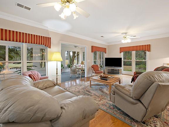 DeBordieu Colony - Golf Course/Pond Views - This Classically designed beach home sits in the gated oceanfront community of DeBordieu Colony. This raised style home has good storage and plenty of parking on the garage level for bikes, carts and and beach gear. This home sits centered on the .62 acre homesites with a variety of trees and mature landscaping. Up the front stair case takes you to an expansive front porch that leads to a welcoming foyer with views through the house to the golf course in the rear. Guest suites #1 and Bedroom #2 are on each side beyond the foyer. The hall to the right also includes a Bath #2, coat closet, laundry room and linen closet. The Primary suite is just ahead on the left and hosts multiple closets, utility/linen, a walk-in closet, a large tub, shower double sink and water closet. Off the primary Suite is a bright Sunroom/Office/Bunk room that also opens to the Great-room. Open Concept Kitchen, Dining, Great-room is laid out perfectly for entertaining. This area includes eat-in kitchen bar, wet bar and more. A conditioned enclosed porch was added in the rear of the home with large windows highlighting the wonderful birds eye views of the golf course, sprawling oaks, and distant pond. DeBordieu Colony is an oceanfront community located just south of Pawleys Island, South Carolina featuring private golf and tennis, saltwater creek access to the ocean, a 24 hour manned security gate, and luxury homes and villas surrounded by thousands of acres of wildlife and nature preserves. People who have been here say there is no place like DeBordieu. Come see for yourself!