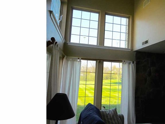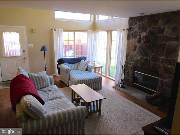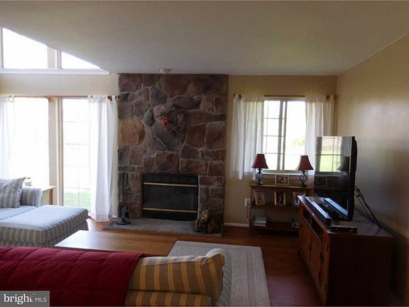 Pride of ownership abounds in this meticulous first floor unit. The wall of windows allows for plenty of sunlight to drench the living room and provide the most beautiful views of the surrounding open space. The stone fireplace is perfect for those chilly winter days and nights. The dining area overlooks the living room and offers a large closet for storage. The kitchen provides plenty of cabinets and countertop. The newly installed wood floors flow throughout the living room, dining room and down the hallway to the main bedroom offering a walk-in closet and a private door to the renovated bathroom (with a second door to the hallway). The second bedroom features a large closet. Looking to start the day with a morning cup of beverage, the private patio (with sliders from the living room) is the place to enjoy the quietness. You really do need to view this unit for yourself to truly appreciate what all it has to offer.