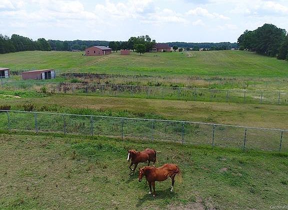 Previous home of the Fisher Ostrich Ranch. 3 bedroom, 2 bath, full brick home on approx 36 acres. Kitchen with unique breakfast bar, large laundry room, covered porch overlooking pasture. Several outbuildings include: 5 stall barn with individual roll up doors and multiple flex spaces. Utility/storage shed and 4 additional outbuildings. Acreage mostly cleared, partially fenced.
