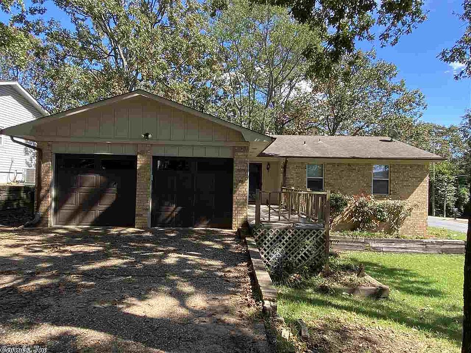 Brick and frame home on a corner lot wit two car garage, fenced yard W/ access gate- large deck Upgraded Garage doors, Exterior JUST PAINTED include hardwood, floors, HVAC unit, Hot water heater, security system,upgraded quartz counter tops, washer, dryer and refrigerator convey with property, close to schools and all area local amenities. well maintained home Corner Wood burning Brick surround fireplace, eat In kitchen area, laundry room