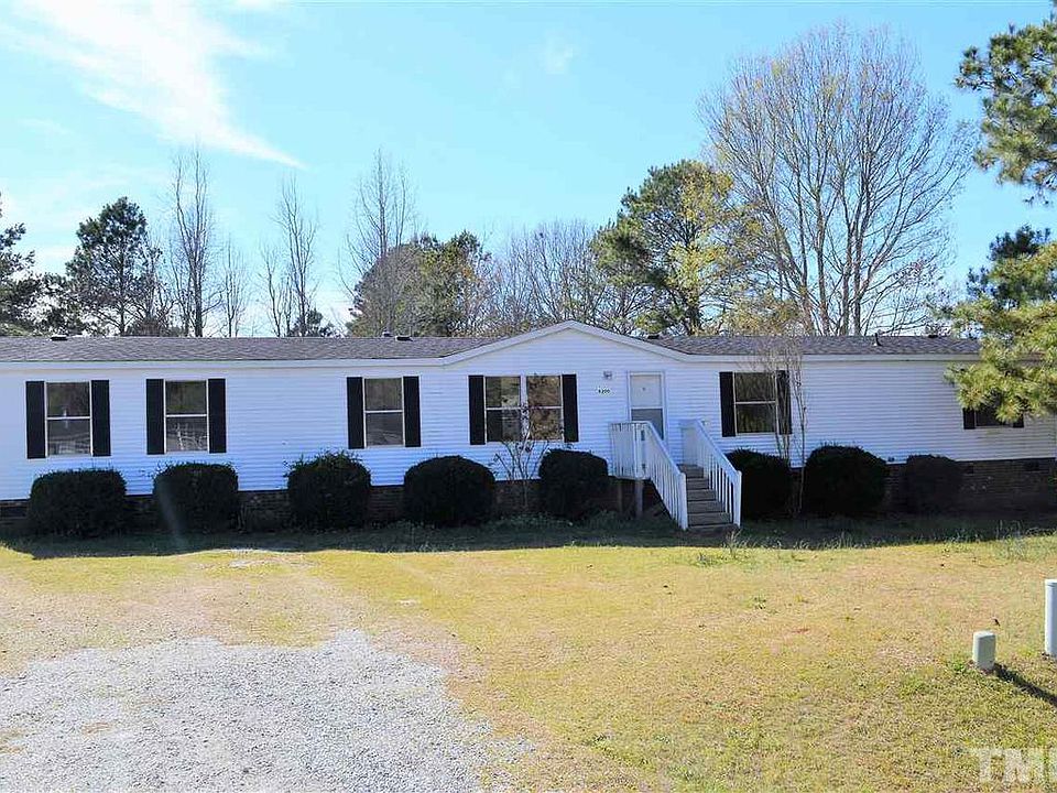 Looking lots of space on large flat lot in FV, Wake County? Updated Double Wide home w/ newer carpet, newer kitchen appliances & cabinets*new 3 Yr old roof & energy efficient heat pump*Large open floor plan*4 Bedrooms (Septic permit for 3 Bedrooms) use 1 for office/study or Bonus Rm*Huge Master Bedroom suite w/ large den/sitting area*Large walkin closet & spa bathroom w/ large garden tub & separate shower*Beautiful lot*Bonus 15x15 Storage building*Handicap ramp in rear-wheel chair accessible*Schedule ASAP