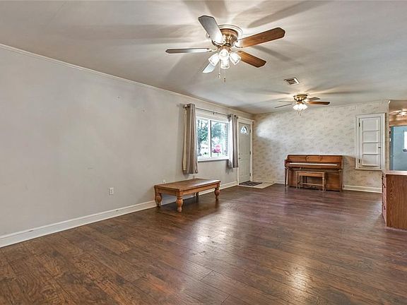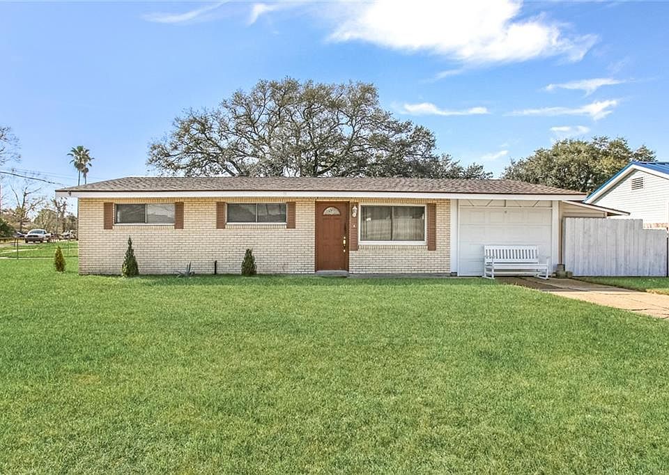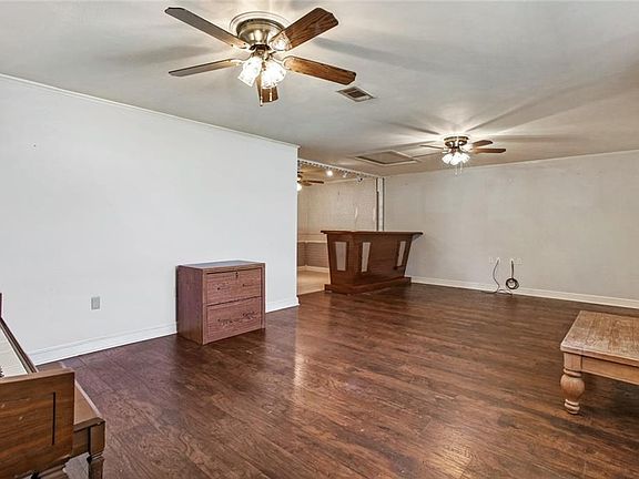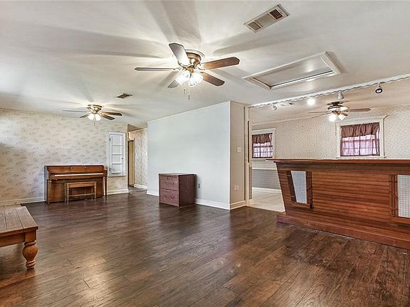 Corner lot in convenient neighborhood with a lot of new construction. Attractive home with large open living room, dining room and kitchen. Custom built cabinets that lock and pull out shelving. Could easily be changed back to the original 3 bedroom by adding a wall and installing a door. This home has many updates and has so much potential. New Roof and low flood insurance. Covered patio and workshop. Don't miss this opportunity. Custom bar between the dining and living room is movable but can stay.