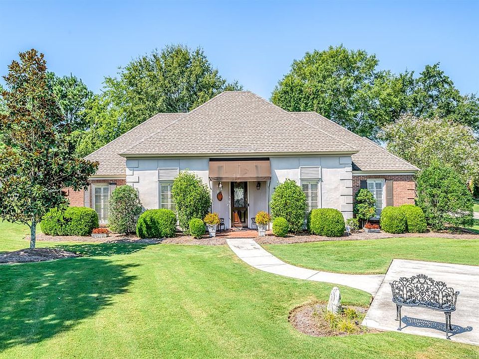 NEW PRICE, NEW PHOTOS, FRESHLY PAINTED INTERIOR and MOVE-IN READY! Located on a beautifully landscaped quiet cul-de-sac lot this single story brick home is impressive from the moment you drive up. Just beyond the diamond-paned mahogany door is a octagonal foyer and comfortable open floor plan! Enjoy family living and gracious entertaining in the large great room with fireplace and wet bar, formal dining room, breakfast room, stunning updated kitchen and spacious sunroom/den. Kitchen features include an abundance of cabinets and counter space complete with granite countertops, work island and black appliances. Featuring 3 bedrooms/3 baths and an office/bonus room or a private 4th guest bedroom with an ensuite bath which is simply stunning - offers a gorgeous vanity, decorator tile and an oversized shower. The Master bath has been remodeled to include an oversized tiled shower and raised double vanities. Just a few of the numerous extras throughout the house include double pane windows, extra insulation, plantation shutters, hardwoods, extra wide 3ft doorways, custom built-ins, attic storage with lighting and insulation over the extra large 2.5 car garage, garage also has a 3rd bay, private workshop/attached storage and extra parking pad. Newly landscaped front and back yards, new con-creations covered patio with sunbrella awning with lights and auto retract, brick paver garden area, irrigation, landscape lighting and the list just goes on!! This home is EXCEPTIONAL, IMMACULATE and in PRISTINE condition!