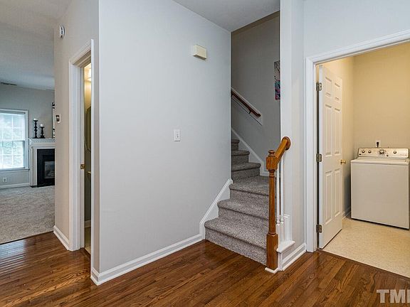 2 Story end unit that lives like a townhome. All new designer light fixtures, carpet, granite, ss dishwasher, range, celling fans. Cozy fireplace in FR. New roof 2020, AC 2020, Heat 2020. Flex space off owner's suite would be an ideal office or gym. Owner's suite w/vaulted ceiling, WIC, oversized bath w/soaking tub, separate shower + dual vanities. Plenty of loft storage in garage. Washer/dryer, frig convey. Prime North Raleigh location near 540, RDU, shopping, schools, grocery, restaurants.