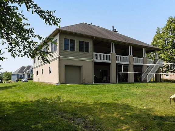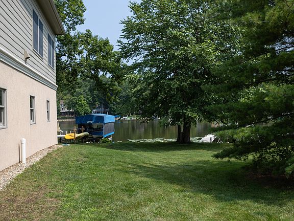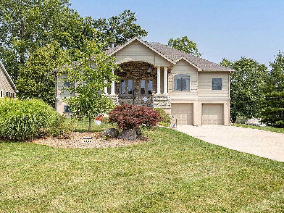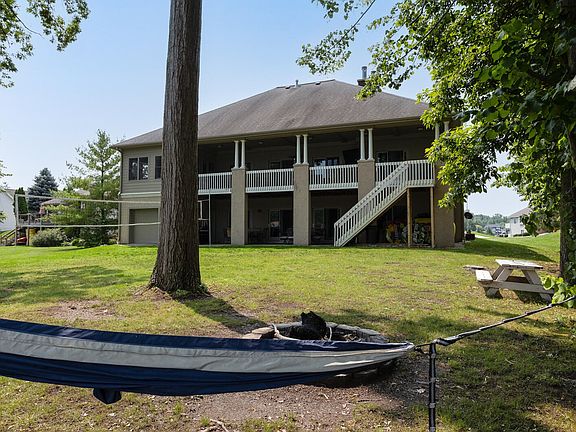 Gorgeous lakefront home on private all sports Loch Erin. Wonderful open floor plan! Featuring cathedral ceilings stone fireplace travertine flooring Corian counters & radiant heated floors. Owners suite w/ addl' private adj. room that doubles as an office or private bedroom. 2 addl' bedrooms on main level, overlook & connect to covered deck adding 1000 square feet of living space to the over 4,000 living space inside! The lower level features a 2nd kitchen, family room w/ vinyl plank flooring w/ stone fireplace overlooking a covered lakeside patio! 2 bedrooms w/ full bath & half Bath. Garage that opens up lakeside & feature almost 1,200 sf w/ radiant heated floors. This custom built concrete home spared no expense in its const. Maintenance free exterior. Price to sell immediately!