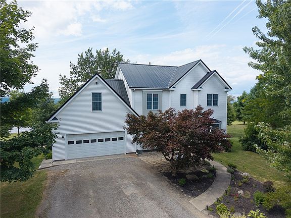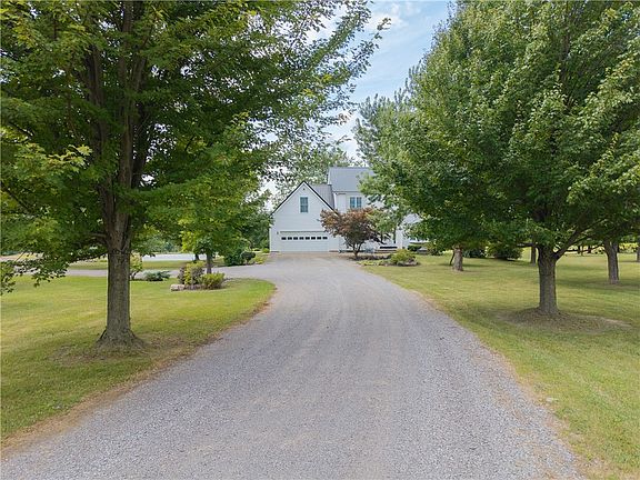 INCREDIBLE VIEWS FROM 37.5 ACRES - 4 BEDROOM, 3 1/2 BATH COLONIAL WITH POND, TRAILS AND BARN - Experience breathtaking views down the Genesee Valley from this stunning two-story 1999 custom build colonial home with no details left untouched - sitting on 37.5 partially wooded acres with walking and riding trails, plus over 200 thriving blueberry plants. A spring-fed stocked pond with bass and carp add to the natural beauty to this one-of-a kind property! Inside, the home offers 4 bedrooms and 3.5 baths, showcasing Brazilian cherry hardwood floors on this first level. The chef’s kitchen features solid Corian countertops, a granite center island and abundant natural light, seamlessly flowing into the living room with a wood fireplace. Upstairs you’ll find four spacious bedrooms, including the primary suite and an added finished bonus room. The updated bathroom boasts new marble flooring for a touch of luxury. The partially finished lower level includes new laminate flooring, a woodstove and plenty of space for family gatherings or movie nights, with a full walk-out to the patio overlooking the landscape gardens and grounds. Outdoor living is unmatched with two decks, one covered while the other is located off of the bonus room - both overlooking the serene pond and hills. The barn offers endless possibilities with generous storage, a workshop area and a walk-up second level. The square footage includes the finished bonus room and lower-level finished area. Conveniently located just 40 minutes south of Rochester, and only five minutes to the Village of Dansville, the property provides; privacy, natural beauty and accessibility. Public open house on Saturday, August 30th from 1:00 PM until 3:00 PM. Delayed negotiations to take place on Monday, September 8th at 12:00 PM.
