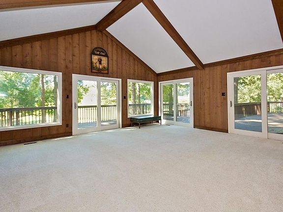 Stunning wood/stone 1.5 story w/2car side load garage with gorgeous view of water and located on the golf course! Multi-level decking for ample entertaining space! Updated kitchen w/granite, tile backsplash, gas cooktop, dble ovens face golf. Massive den w/stone fireplace faces golf! Sunken L/R & ajoining D/R. Owner's on main w/updated bath and lge walk-in closet! One of the prettiest on the st!
