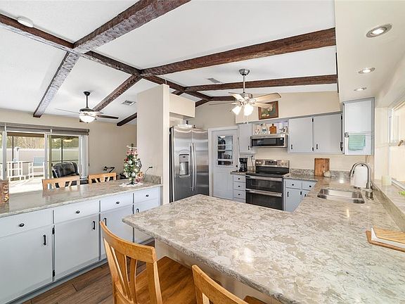 Under contract-accepting backup offers. Immaculate and Updated 3 bed/2 bath POOL Home in a Highly Desirable SW Neighborhood! This beautifully maintained property features a totally remodeled new custom kitchen with new stainless steel appliances including double ovens, gorgeous quartz counter tops, and lovely tile flooring throughout the entire house. Both bathrooms have new granite counter tops and new comfort height toilets. There is so much NEW in the house including a brand-new roof (Aug 2025), light fixtures and fans, all new windows, new water softener 2 yrs ago, new drain field 2013 and septic was pumped last year, new garage door and opener, new Electric Panel box 2 yrs ago. A/C was replaced in 2017 and new well in 2012. The whole house is warm and inviting. There is a large living room that could be an additional bedroom plus there is a family room with wood burning fireplace right off the kitchen area that leads out to the patio and pool area. This property offers a beautiful fenced in backyard featuring an inground salt water pool that is that can be heated and was installed 2021. This saves time and money with less chemicals and helps you enjoy your pool time more. The covered patio is the perfect location to lounge and relax. The large back yard is fenced for privacy or for your fur family. The shed in the corner of the property is very handy for storage, gardening enthusiasts or projects. The home is constructed with OffSet Concrete block and it appears as if it is a frame home with siding, but this study construction is carefree and durable. Painting is all you will ever need to do! There is no HOA or added fees. Great location just 2 blocks off SR 200. Don’t miss this exceptional opportunity!