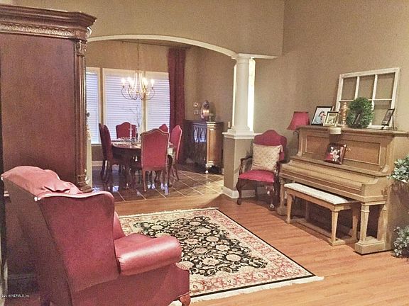 Beautiful & charming 4BR/3BA country estate on almost 1-acre in the desirable Sierra Oaks community in NW Jacksonville. Open spacious floorplan with over 2,500sf of living area in this model quality home! There is plenty of space for a large family and is great for entertaining. Formal Living Room & Dining Room, large Family Room with Fireplace, separate Den/Office with French Doors. Lots of extras including beautiful built-in Entertainment Center & bookshelves in Family Room, stunning columns & arches in DR, LR & FamRm, rounded corners on walls, custom cornice window treatments, double-trey ceiling in master, granite countertops. Other features include tinted windows, sprinkler system, water softener & security system. Ceramic title & laminate wood floors throughout.