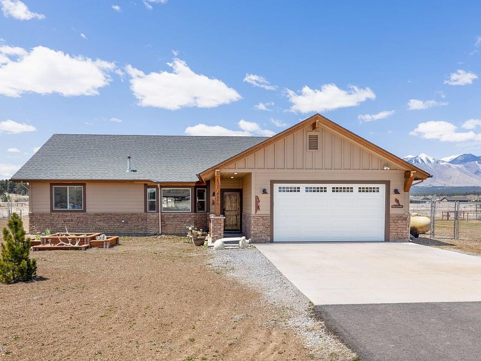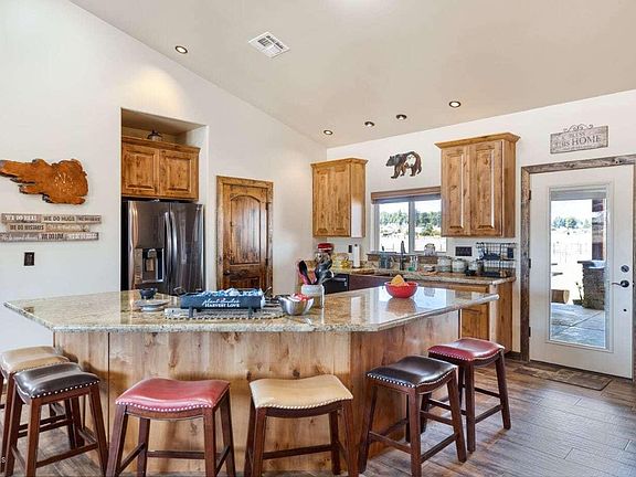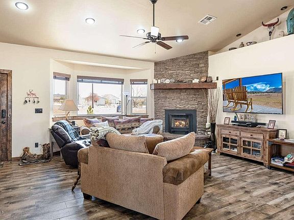 Fabulous Horse Property, Spectacular Views, Move In Ready Home on 3.5 acres!!! This wonderful Horse Property, just a short distance from Flagstaff, offers a 32X24 (including 3 12X12 stalls and a 12X12 tack room) , 12X16 Loafing Shed, Arena, and 6 ft. fencing w/multiple gates enclosing the entire back yard. Covered patio features a huge rectangular log table for those family and friend gatherings, fireplace, spa, and wired for TV. Inside treat yourself to a magnificent open floor plan, spacious kitchen w/knotty alder cabinets, granite counter tops, upgraded appliances, & walk in pantry. Pellet Stove in Great Room w/vaulted ceilings, Spacious Master and Master bath w/walk in shower, AND Central Air. 3D Virtual Tour Availabl