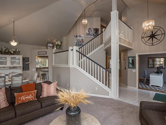 As you drive down the tree lined driveway you will be amazed at the beauty of the park like grounds covering approx. 4.64 acres! The colors of the trees are outstanding and set the stage for the beautiful house. The elegant house with approx. 4300 sq. ft. offers 4 bedrooms, 4 baths, den with french doors off entry, soaring vaulted ceilings in living and dining rooms, kitchen complete with island and pantry, large nook is open to the family room, and a laundry room with lots of cabinets and a window for natural light. Large master suite with french doors, fireplace, spacious walk-in closet and en suite. The lower level features a spacious recreation room, mini kitchen, game area, bar area, spacious bedroom, playroom, and a storage area. The refreshing pool is fenced separately. This is a must see 40x60 shop with loft area & 1/2 bathroom. You will enjoy the amazing beauty of the landscaping, which includes the waterfall, gazebo, sitting area and vignettes throughout the property. This is a "One of a kind" oasis!! Truly your own private park! Outstanding! Here is a great opportunity to live in a beautiful home that is surrounded by private park like grounds.