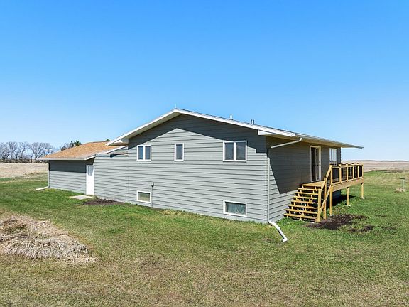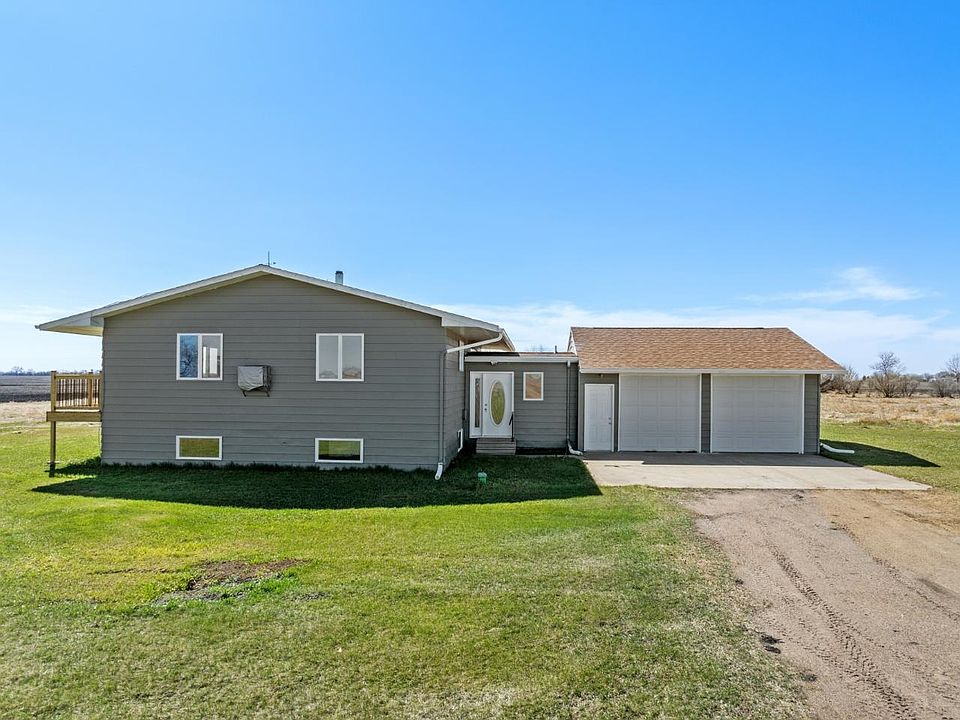 Welcome to your quiet oasis on nearly 20 acres of flat land just minutes from Minot! Walking into this home, you'll be greeted by a big foyer that features a laundry room area and a 3/4 bathroom. Upstairs, you'll find a large living room area, dining room, and kitchen featuring brand new stainless steel appliances. The main floor has all new flooring along with a fresh coat of paint. There are 2 good sized bedrooms on the main floor. The one bedroom has an attached 1/2 bathroom. There is also a full bathroom in between the 2 bedrooms. The downstairs has a large living room space, a bedroom, a 3/4 bathroom, and ample amounts of storage. The house has an attached 2 stall garage. There is a large deck accessible just off the main floor living room that was just constructed in April 2024. Enjoy watching sunrises and sunsets while overlooking an abundance of wildlife and peace and quiet. The lot is 19.91 acres and features 2 big quonsets. Don't miss out on this rare, affordable rural oasis!