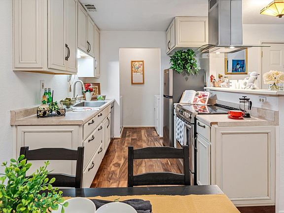 Mature landscapingLaminated wood-looking flooringGlass canopy vent hoodRenovated kitchenPlenty of natural lightRenewed bathroomStainless-steel slide-in stove