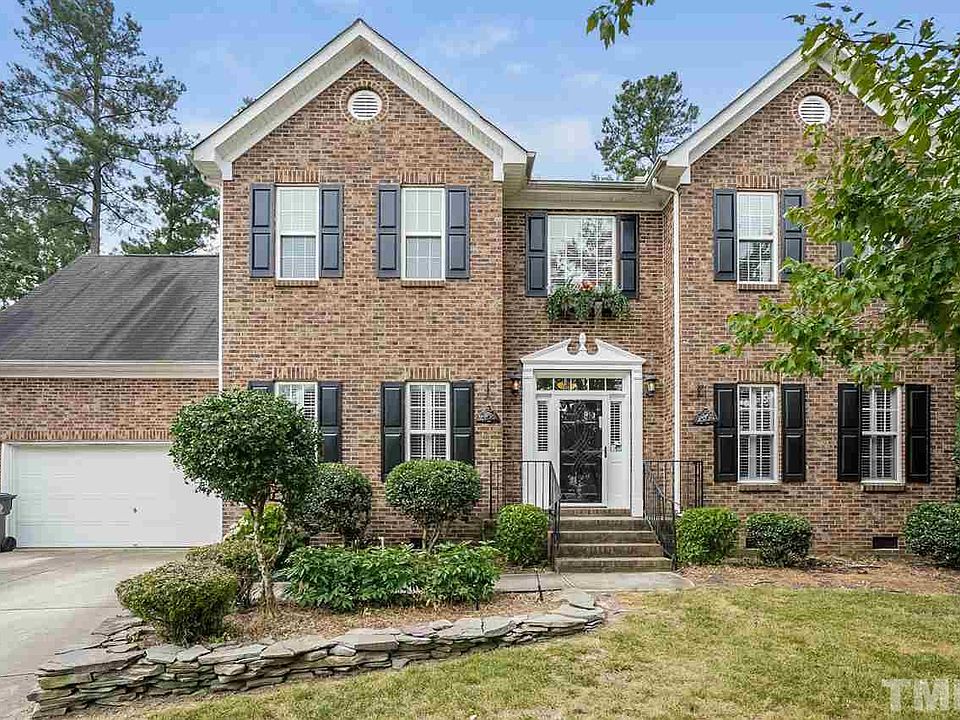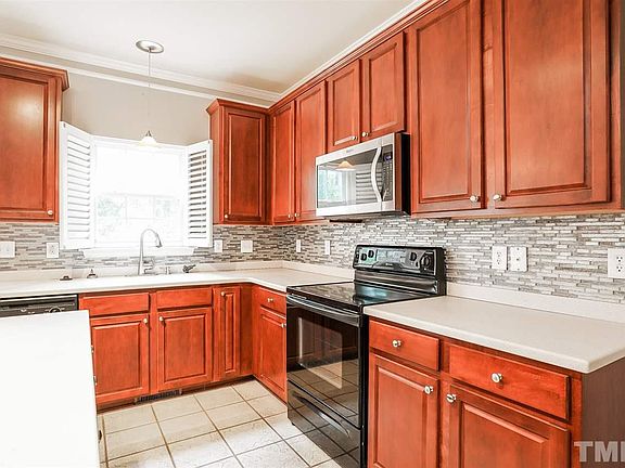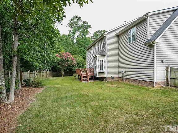 Built in 2001, this Raleigh two-story cul-de-sac home offers gas heating, Corian kitchen countertops, a walk-in master closet, a den, a deck, and a two-car garage.