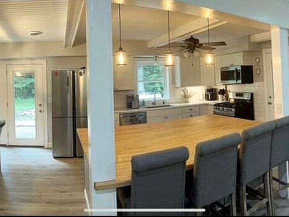 Great country setting for this 3-4 bedroom, 2 bath home. Enjoy 2,784 sq ft of living space with an open concept. Fully remodeled with an attached 2 car garage, a covered front porch, a private back deck, with a great view from the backyard overlooking the 5 wooded acres!