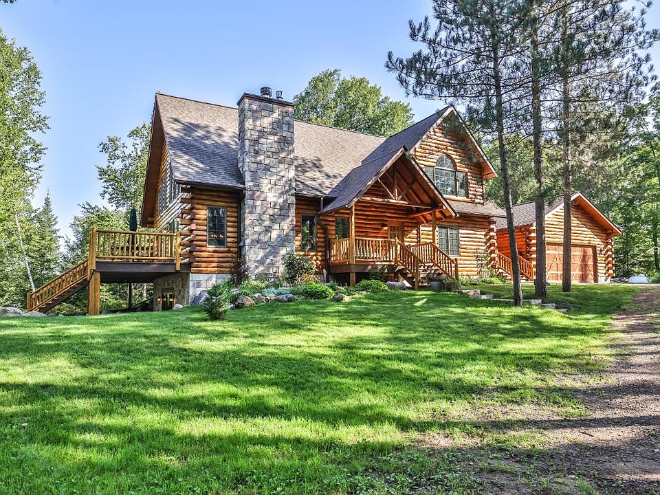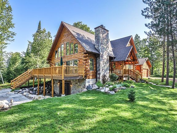This full cedar log home in mint condition was created by the prestigious, Rapid River Log Homes. Standing in the heart of the home you will fall in love w/ the towering cathedral ceilings, full log beams & lakefront wall of glass. Enjoy endless water views on the lake side deck & large screened in porch. Open concept kitchen, dining & living area feat. a breathtaking floor to ceiling fireplace, custom flooring & kitchen w/ high end appliances & granite counter tops. No detail was left behind in the master suite featuring an oversized soaking tub & dream walk in closet. The walkout LL offers a 2nd fireplace, wet bar, theater room & sauna. This 8.3-acre parcel w/ 338’ of frontage offers ultimate privacy backing up to the Catherine Wolter Wilderness Area: 15 wild lakes, 2,641 acres & X country skiing/hiking trail throughout. Oxbow lake is noted for its outstanding fishing & many bays making it one of the most desired lakes in the Northwoods. This elegance & privacy is a very rare find.