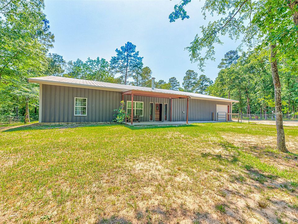 Unrestricted!!! Live off the grid. As you walk through this 2000 sq ft home open concept 3 bedroom, 2 Bath on 2+/- acres. Primary bedroom with STUNNING walk-in closet with built in shelves. Family Room with Oversized Stone Wood burning Fireplace with Black Walnut mantel, High Ceilings, Italian tile floors all throughout the Living room and island kitchen, Granite Countertops and custom wood floating shelfs, Pantry, big Mud room and Utility comb with easy access to the Huge attached garage 40x48 with a small office space, plenty of room for multiply cars and storage the possibilities are endless with such a big space. The property also includes a 1500-gallon rainwater Harvesting system that provides clean fresh water into the whole house. Exterior: 40x42 Carport with slab perfect for RV and Boat parking. 30 chicken coop. This property is ideal for getting out of the city without traveling too far and enjoying your own privacy. Minutes from 2nd largest lake in Texas (Lake Livingston)