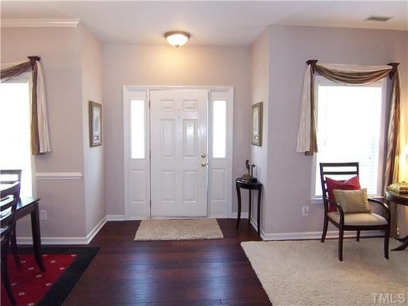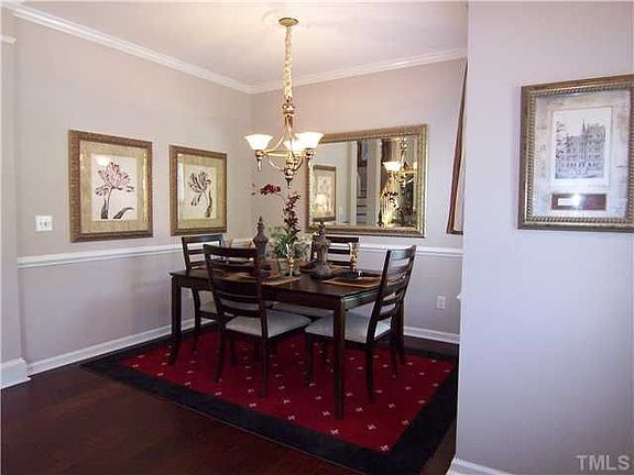 IDEALLY LOCATED!! - MOVE IN READY!! One owner, two-story traditional. Newly painted interior & exterior. New light fixtures, sink, faucet & disposal. Family room w/ gas fireplace open to kitchen. 9' ceilings downstairs, all smooth ceilings. Hardwoods in foyer. Dining room has columns, crown molding & chair rail. Cathedral ceiling in master bedroom w/ large walk-in closet. Master bathroom has garden tub, separate shower & dual vanities. 4th bedroom / bonus room pre-wired for surround sound. Neighborhood Description The loaction is great. It is within walking distance to schools. Close to Research Triangle Park, the airport and great shopping.