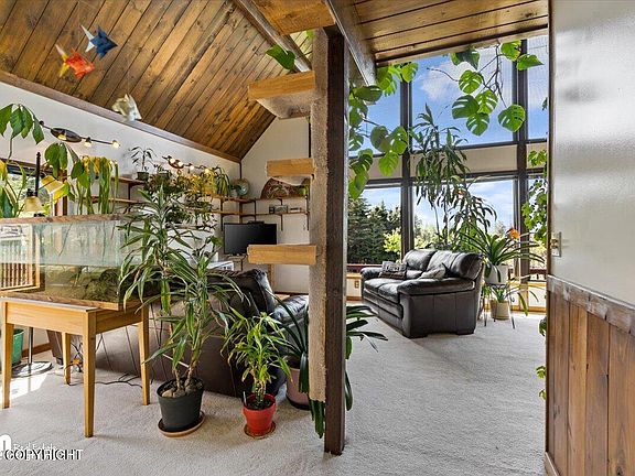 Privacy galore in South Anchorage. This cedar A-frame chalet sits on a rare 2.48 acre unrestricted lot with inlet & mountain views and exceptional seclusion. Home features 2 beds and 2 baths, loft space, expansive decks, 1 bedroom guest cabin with sauna, small workshop, 2 sheds, greenhouse, and parking for several vehicles. Potential for glorious views by removing additional trees on property