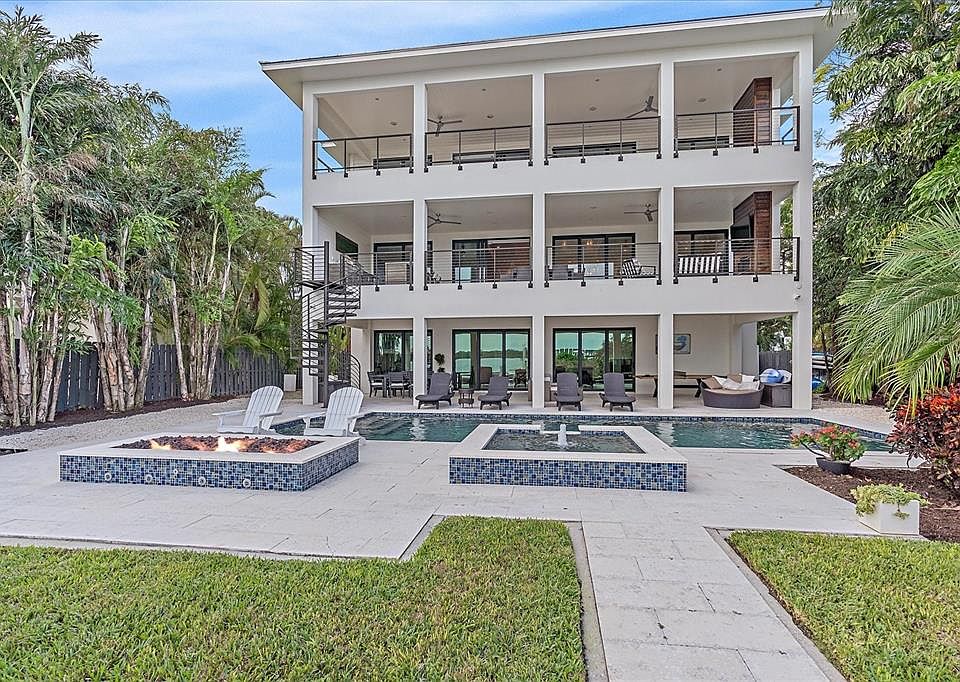 PRICE IMPROVEMENT!!! Experience the perfect fusion of coastal opulence and modern elegance within this waterfront residence located in one of Sarasota's most coveted zip codes: 34242, Siesta Key, home to the #1 beach in the USA. This turn-key oasis awaits your arrival. Built by the esteemed boutique firm, NC Ferguson Construction of Sarasota, this home exudes timeless charm and the functionality of new construction. Your backyard retreat where cherished memories will be made boasts 62 feet of waterfront AND a private beach, a rarity in itself to launch kayaks and paddle boards. Set sail from your own boat dock with jet ski lifts and a 10,000 lbs. boat lift, granting direct access to Little Sarasota Bay and the Gulf. Nestled amidst protected mangroves and meticulously landscaped surroundings, you'll discover an oasis of serenity and the lifestyle you've always dreamed of! This home offers a total of 8,256 sq. ft., including 5,034 sq. ft. of air-conditioned living space and 2,256 sq. ft. of covered balconies and patios. Enjoy the pool, spa, and gas-powered fire pit while relishing Little Sarasota Bay's unobstructed views. The residence features four bedrooms, three full bathrooms, and a separate home office on the second and third floors. On the spacious ground-level living space, you'll find an additional custom-built bunk-bed room, a luxurious aprés-swim full bathroom, and a piano/entertainment room that can also be utilized as a private gym. Begin your day with waterfront vistas and the soft glow of the sun reflecting off the bay, thanks to direct access to a covered balcony from your primary bedroom sanctuary. This exquisite suite encompasses a sitting area/library and features two impeccably designed walk-in closets, an en-suite bathroom with a soaking tub, dual vanities, and a glass-enclosed shower that offers breathtaking waterfront views from every angle while maintaining absolute privacy. The chef's kitchen, adorned with an expansive Quartz island, overlooks the dining and living areas, seamlessly integrating with a full wall of glass sliders that reveal awe-inspiring colors of the sunset and lush bay panoramas. Equipped with a six-burner Wolf stove and an array of Wolf appliances, including a coffee/espresso/cappuccino maker, this kitchen is a culinary masterpiece. Savor pristine water courtesy of the reverse osmosis water filtration system, which also connects to your luxury ice maker. Your Sub-Zero refrigerator and Asko dishwasher complete this epicurean haven. For grand gatherings, indulge in the football game on one of two patios with outdoor television monitors. As boats gracefully glide by, revel in your comprehensive outdoor kitchen, complemented by a custom exterior spiral staircase that leads to your waterfront patio sanctuary, offering another convenient access point to the ground level. This intelligent abode boasts full automation with remote access to landscape lighting and irrigation, boat lifts, a Sonos multi-zone indoor/outdoor speaker system, garage door controllers, a security camera system, interior lighting, pool/spa temperature and lighting controls, automated blinds, and wireless internet range extenders. The three-car garage ensures your vehicles are comfortably housed, and it even includes ports to easily install a Tesla charging station. This home welcomes you with open arms, fully finished and exquisitely adorned, ready for you to relish from day one. Paradise beckons – your home in paradise awaits…