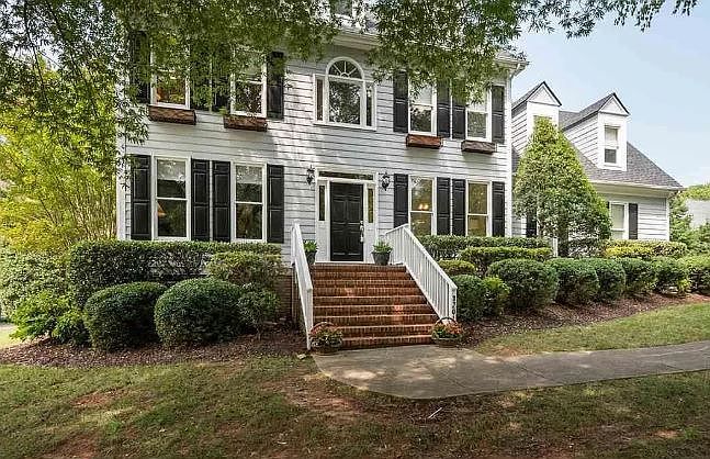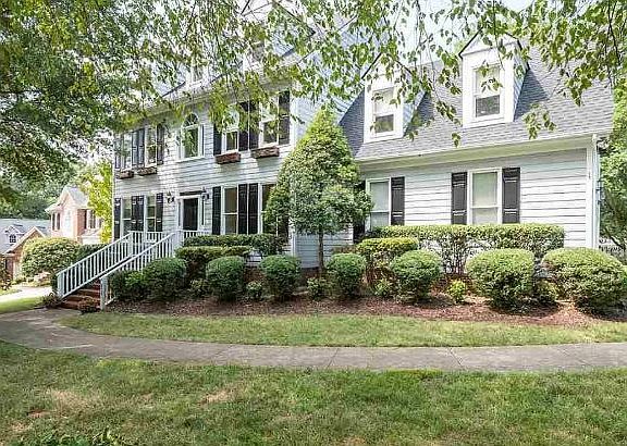 A lovely North Raleigh traditional home situated on a corner cul-de-sac lot. This spacious residence offers over 2,600 sq ft of living space, including an unfinished walk-up attic. It features 3 bedrooms and 2.5 bathrooms, along with a bonus room that has a back staircase, an office, a family room, and a dining area. The large new deck and fenced yard with trees and a playhouse create a perfect outdoor space for family and entertaining. Interior highlights include hardwood floors, granite countertops, stainless steel appliances, and a fireplace. Recent updates include new lighting fixtures, a new roof, a new water heater, fresh carpet, and fresh paint. Located near shopping districts, top schools, and parks, this lovely home offers a wonderful setting. Make this house your home for the holidays!