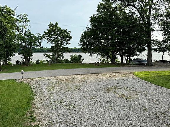 River home/Camp for sale! Enjoy the outdoors with the beautiful views of the Ohio river, wildlife, nice size yard and spacious deck. This home offers a 3 bedroom, 1 Bath, and a 1 1/2 car garage. The top level living space is 1344sqft and the bottom level is 576sqft. This home also has private boat ramp access. Just located about 15min from the westside of Evansville and about 7min from Dogtown boat ramp. This is a very desirable location! Home sits on leased property and sold as is. Please contact seller for showing.