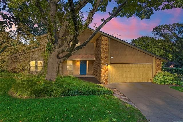 Unique 4 bedroom home tucked in a quiet cul-de-sac in the desirable South Tulsa neighborhood, Forest Creek. Jenks Schools! Dining room open to vaulted living room with skylights, fireplace and wet bar. Under stair storage or shelter. Eat in kitchen with bay window. Two very large bedrooms down- could be 2 masters. Tons of built-ins in all bedrooms. Back yard has a peaceful, shaded flagstone patio and deck. Sprinkler system. Roof new in 2018. 1 block from neighborhood PARK and POOL!