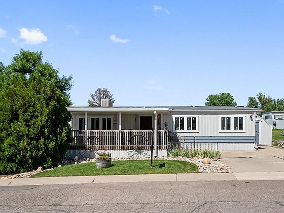 Welcome to this completely remodeled and stunning 2 bed 2 bath home in the desirable Wolhurst Lake community! Enter through a custom wood front door with decorative detail to reveal custom woodwork in the living area, bead board and stained beams. There is white oak wood floors throughout the kitchen, living area and bedrooms. All of the cabinets have been upgraded and all of the windows are brand new. The kitchen is beautiful with two tone cabinets, marble countertop and backsplash, plus bonus, there are 2 pantries and one with a custom barn doors and the other with reclaimed wood. There is a cabinet that can house a microwave out of sight. All of the appliances are brand new and the faucets and outlet covers are upgraded to oil rubbed bronze finish. The second bedroom has gorgeous sliding doors with custom glass detail. The hall bath has beautiful tile floors and marble vanity top, plus a step in shower with a seat and marble surround. Love your spacious primary bedroom with its own private bathroom. The primary bathroom has beautiful tile floors, a step in shower with glass detail and built-in shelf. The vanity has a beadboard backsplash, marble countertop with a copper sink and detailed mirror. All of the plumbing has been upgraded to PVC. Love your outdoor area! This home has a large covered front patio and the corner lot is gorgeous with seasoned trees, landscaping in the front with flowers and flower planter. The shed provides extra storage. Plus this home is Move In Ready! Enjoy your community amenities including Club House (with Kitchen, Bar, and 52" TV) Swimming Pool, Private Lake, Ping Pong & Pool tables, Walking distance to Platte River, Fishing, & Exercise Room (with Exercise Machines, treadmills, free weights, etc..) Bonus - RV PARKING!