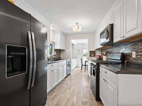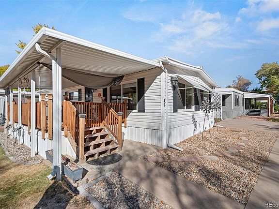 Welcome to this one-of-a-kind updated 2 bed 2 bath home on Huge Corner lot in Wolhurst Lake! This home has been completely remodeled! Enter into a large open and bright living area and into the dining area that has a built-in buffet with granite countertop. Plus, there is a formal dining area that could be converted into a third bedroom and there is built-in shelving & cabinetry. The kitchen has beautiful white cabinets, and custom glass tile backsplash. The kitchen also has a composite sink and black stainless appliances. The primary bedroom is spacious and has its own private bathroom. The primary bathroom has an oversized vanity with granite countertop and plenty of cabinet space for extra storage. Enjoy your outdoor living area with a large covered front patio with gorgeous new railing, large grassy area and xeriscape front area of the home. Bonus there is a shed for extra storage and this property has 3 off street parking with one that has a private entrance into the home. With 2018 furnace, roof was sealed last spring, new gutters, and all new plumbing with home is ready to move in. A very rare find! Enjoy the community amenities including a Club House (with Kitchen, Bar, and 52" TV) Exercise Room (with Exercise Machines, treadmills, free weights, etc..) Swimming Pool, Private Lake, Ping Pong & Pool tables and Community Garden. Plus, walking distance to Platte River, Fishing & Bonus -RV PARKING!