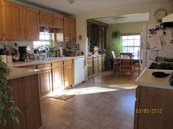 The home is light and airy, newly painted throughout, with easy care hardwood and tile laminated floors. The kitchen is large with oak cabinets. Master suite bedroom is 14' x 14', with walk-in closet. Both bathrooms are large with linen closets.