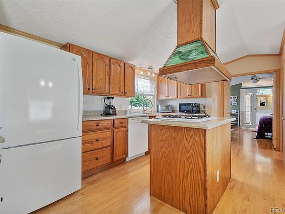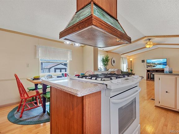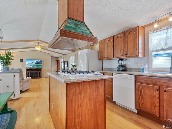 Welcome to this gorgeous 2 bed 2 bath home in the desirable Wolhurst Lake community! Enter into a stunning open living area with vaulted ceilings, a built in cabinet and wood floors throughout. The kitchen has tons of cabinets for extra storage, quartz countertops and the stove is located in the island with a vented hood with beautiful glass inserts. There is also room for a dining table in the kitchen that can seat up to at least 6. This ideal floor plan puts each bedroom on opposite sides of the home for more privacy. The primary bedroom is very spacious and has its own private en suite. Escape through the French doors into the breathtaking en suite with a massive vanity with granite countertops, an undermount sink and both lower and upper cabinets, plus a large step in shower. The second bedroom has new carpet. The laundry room can double as a mudroom with access to the side of the home and has upper cabinets for extra storage. Love your one of a kind outdoor living area with sprinkler system this summer that backs to open space! Stay cool under the large covered front TREX deck patio or BBQ on the pressed concrete patio below with room for patio furniture and the side yard is privately fenced. Energy and space saving tankless hot water heater. Bonus, the shed has power. Community amenities include Club House (with Kitchen, Bar, and 52" TV) Swimming Pool, Private Lake, Ping Pong & Pool tables, Walking distance to Platte River, Fishing, & Exercise Room (with Exercise Machines, treadmills, free weights, etc..) Bonus - RV PARKING!