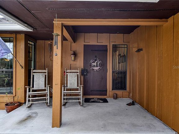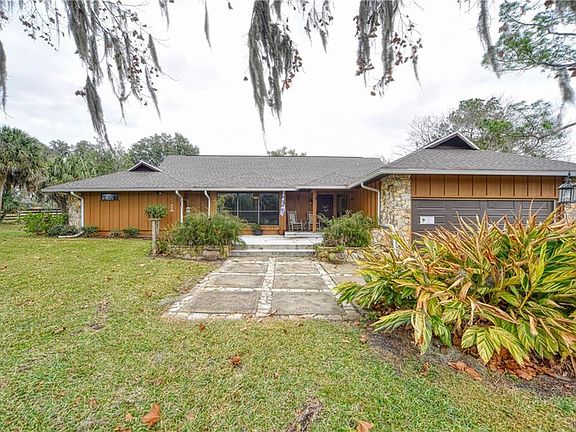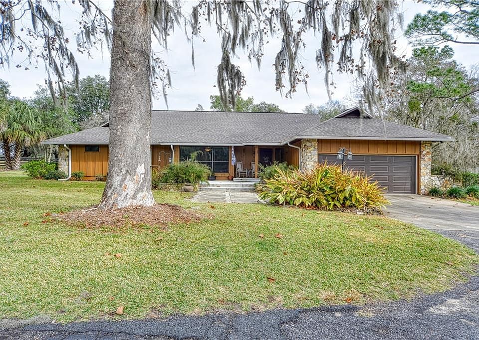 Perfect mini farm! Located 2 miles from the Florida greenway trails, close to shopping, banking, tack and feed stores, in gorgeous equine neighborhood of Turning Hawk on 3.30 acres. This spacious 3 bedroom 2.5 bath home with 2,730 sf of living space, has been updated with new roof, new kitchen with shaker style cabinets, granite counter tops, farm house sink, gas range, new appliances. Home feels warm and inviting, new tile flooring through out most of the home, new windows let in lots of natural light and provide magnificent views of the property. Home offers 2 living rooms, wood burning stone fireplace, floor plan has nice flow and split bedroom plan. Spacious master suite has walk-in shower and separate bathtub, large walk-in closet and extra storage room. Guest rooms are very spacious, half bath has access to screened room to the back of the home, large interior laundry room has adjoining walk in pantry, storage cabinets, and built-in desk, would make a great mud room. Interior has recently been painted. 3 stall shed row barn with air conditioned tack / feed room and equipment storage area, fenced and cross fenced, stalls have rubber mats. The property is nicely landscaped and offers stunning views of oak trees, magnolias and flowering plants in the spring and summer. From the moment your drive through the automatic gate, you'll know your home! Must see the beautiful views to appreciate. Barn and pump shed also have new roof. Well maintained home.