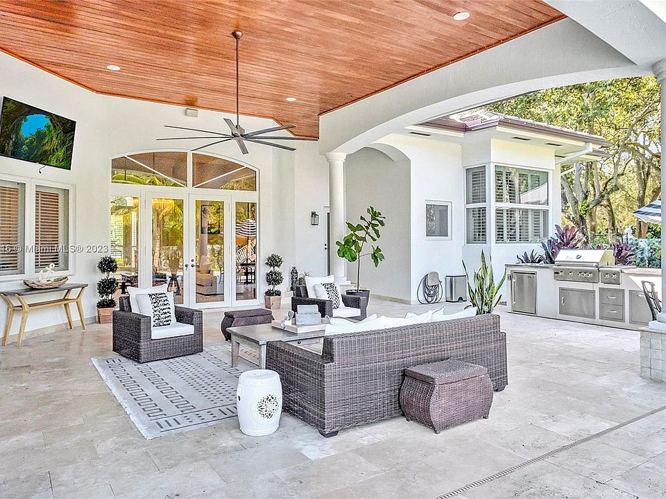 Step into this private enclave on a secluded Cul-de-Sac, tucked away yet close to everything. This elegant 5 BD 4 BA estate is Sun filled throughout and has extra high ceilings. 4,434 of living SF. Crema Marfil and Natural Wood Floors. Chefs Dream, Open Kitchen Concept, Pot Filler, Viking Appliances, Gas Stove, Eat-in Island. The enormous Master Suite has its own wing, with his & hers closets. The Master Bath is so glamorous you feel like you're at a spa. New roof, Impact Windows, Lush tropical landscape design, abundant green space to play any sport in your yard. Entertain outdoors in your resort style backyard equipped with Summer kitchen and Tv. Pool has a sun deck & jacuzzi. Custom tree-house even a grownup will envy! Huge driveway to fit all your guest. Call the Listing Agent.