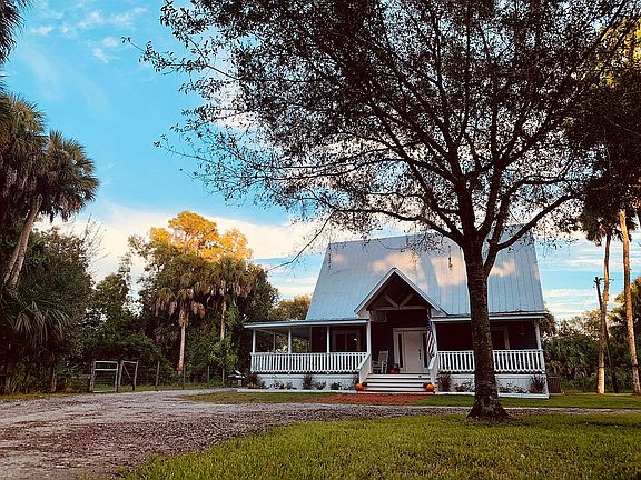 Located in the BEAUTIFUL area of Springhaven Estates in Indiantown, FL Have your morning coffee on the balcony with the sunrise and then enjoy your dinner on the downstairs wrap around porch for the sunset. Beautiful 3 Bedroom & 2.5 Bathroom home tucked away on almost five acres. Home includes an office with a view that makes work hard to get done. Pecky Cypress ceilings, stairs and other trim work that make the home feel luxurious but homey. Entire property is fenced in. There are four fenced paddocks with stalls & water for livestock or horses. Home includes a chicken coop with seven of the friendliest laying hens. Large pond that can be used for irrigation or to stock your favorite freshwater fish. The acreage was recently mulched to make property maintenance a breeze. New Central AC System in 2020, Tankless Hot Water Heater 2019, Washer & Dryer 2020. Home has Double Pane windows with storm shutters. Metal roof and Hardie Board siding. For Sale by owner. Please Contact Audry Topping at 772-708-7094.