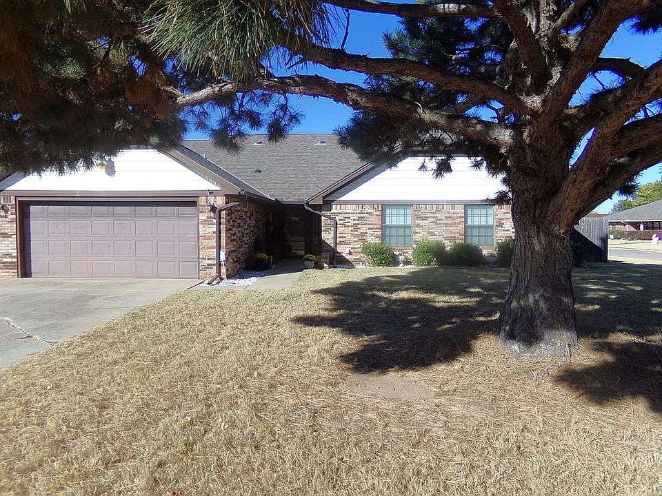 This 4-sided brick home on a corner lot is in a well-established neighborhood. There are granite and quartz counters throughout. The primary bedroom features a walk-in closet, laminate flooring and a double sink bathroom. The kitchen features tile flooring, granite counters, double oven and bult-in microwave. There is an additional 200 square feet of professionally enclosed 4 season sunroom not included in square feet. The two-car garage includes a storm shelter. The HVAC system is two years old, and the roof is only five years old. There is plenty of attic storage and a sprinkler system. The back yard is fully fenced and includes a storage shed. The neighborhood includes a pool and playground near the home. Seller is offering a $2,000 credit for the dining room floor.