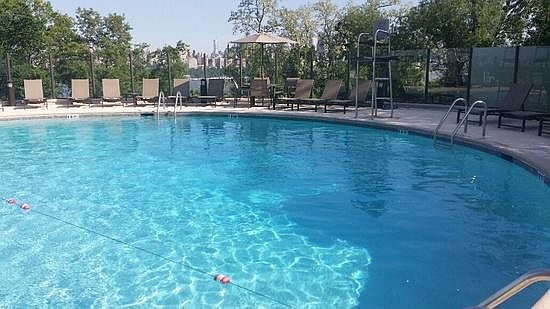 Large modern 1 bedroom/1 bath apartment in luxury hi-rise located on beautiful tree lined street overlooking NYC skyline and Hudson River This large apartment is totally updated with hardwood floors thru-out, stainless-steel appliances with granite counter-tops, new tiled bath, lots of closet space and terrace overlooking park and lake. Amenities include 24 hr doorman, outdoor pool, BBQ grilling area, salt water pool, fitness center, game room...NYC bus stops right in front as does free shuttle to Port Imperial Ferry to NYC and Light Rail Train to Hoboken and Jersey City includes ALL utilities, 1 Month security deposit, 1 month broker fee + 1 free month to offset broker fee cost Please call Bill Phillips (Group26 Realty) at 201-759-0857 for all appoitments