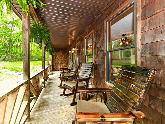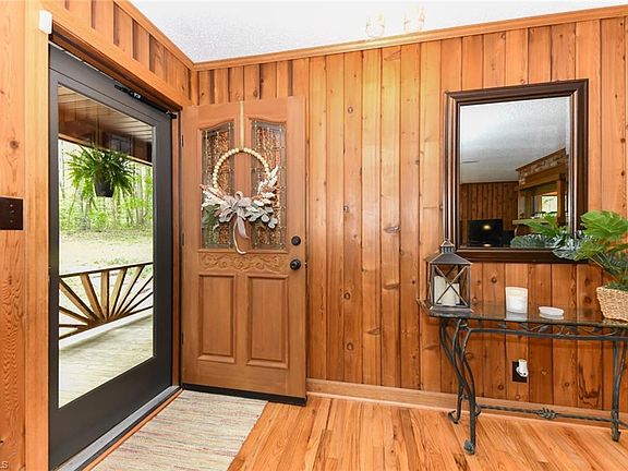 This is truly a rare find! The sounds of nature are all around as you enjoy the comforts of country living in this hidden gem. The spacious front porch immediately welcomes you to this wonderful home with charm and character throughout. The updated kitchen has granite countertops, tile backsplash, garden window, island w/ hanging pot holder, large walk-in pantry, & stainless appliances incl. gas range and refrigerator. The living room has beautiful wood paneling and a lovely fireplace w/wood stove. The dining room has an abundance of natural light with patio doors purchased in 2024 that lead to deck with recently replaced boards & railing (no permit on file). Clawfoot tub in two bathrooms & jetted tub in primary. Office has closet. Gorgeous oak floors refinished in 2024. Fresh paint & door hardware installed in 2024. Full unfinished basement w/ tandem garage/workshop, wood stove & expansion possibilities. Rear portion of home added after house built. Washer, dryer & HSA Warranty incl.
