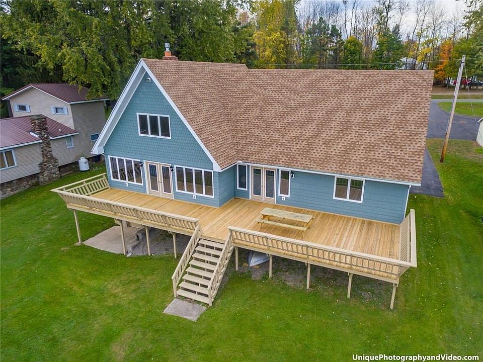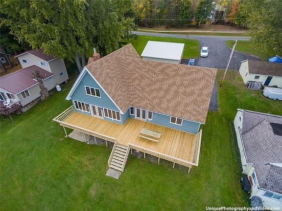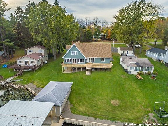 Look no Further! Your Waterfront Home awaits you. Over 90 Feet of Frontage on Port Bayâs West Side. Perfect for a Year Round residence or a great Vacation Rental. This Contemporary Home Includes a Large Dock, Concrete Boat House with Steel Supports & Hydraulic Lift, Steel Breakwall, HUGE Outbuilding for Storage (2015), Paved Driveway & Amazing views of the Bay!! This Well Maintained Home has a New Roof (2015), Vinyl Siding, Central Air, First Floor Master Bedroom and Master Bath, 1st Floor Laundry, Walk out on to the Sprawling Waterfront Deck Overlooking the Bay. Spacious Basement easily can be finished. Set Up a Private Showing Today.