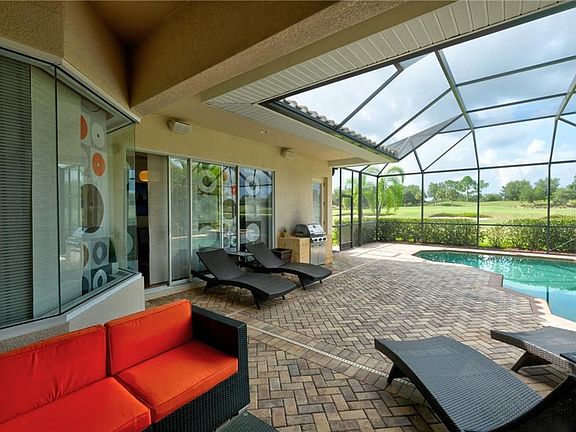 NEW PRICE!! SELLER READY TO SELL!Charming home in popular River Strand, overlooking golf course! TURN KEY HOME in Estate section of River Strand Golf & Country Club is priced to sell! This spacious home offers beautiful tile floors throughout all living areas, crown moldings, granite countertops, solid wood cabinets, stainless steal appliances, a 3 car garage, large over-sized paver lanai, private heated pool and many others. Tastefully furnished and decorated home just couple minutes from the clubhouse! River Strand Golf & Country Club is a friendly community with a 27-hole Arthur Hills designed golf course, 9 Har-Tru Tennis Courts, 8 pools, 8 Pickleball courts, Clubhouse with restaurant (plus social events), 2 fitness centers in this luxury gated community with 24 hr. security & lawn maintenance. Convenient location to I-75, University Town Center, & best beaches in the USA complete the package. OWNERSHIP INCLUDES A GOLF AND COUNTRY CLUB MEMBERSHIP.
