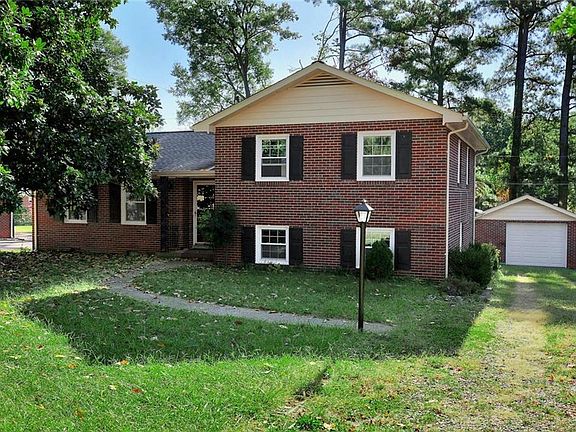 Lovely all brick tri-level. Formal living and dining room with bay window and hardwood floors. Kitchen with breakfast area and beautiful pine cabinets. Large downstairs family room with fireplace and walk-out to backyard. Laundry/mud room convenient to family room with bathroom/shower and access to backyard. Second floor master and 2 additional bedrooms with hardwood floors. New high efficency heatpump. Covered 22X11 back patio for entertaining and family get-togethers. Great detached 22X15 masonry garage with new garage door and 60 amp service.